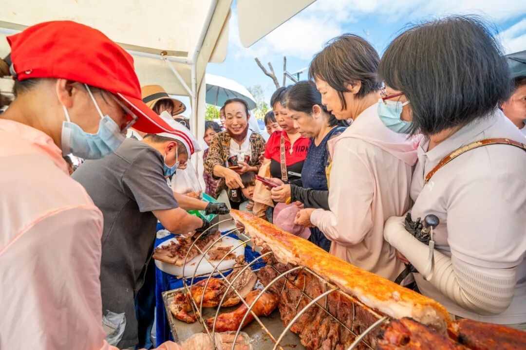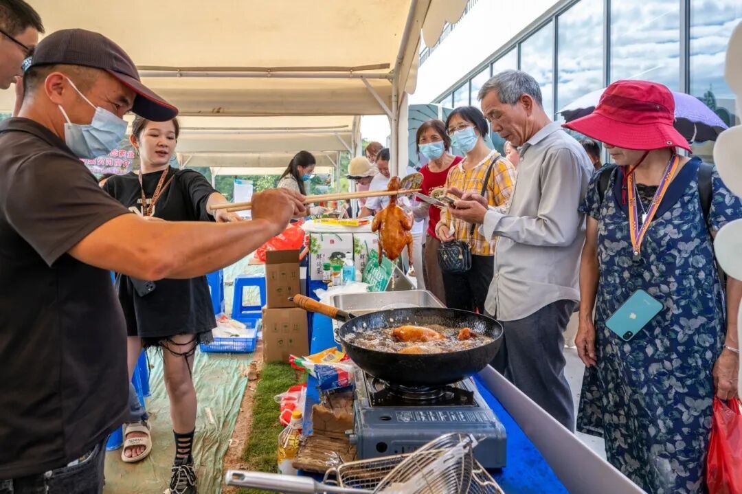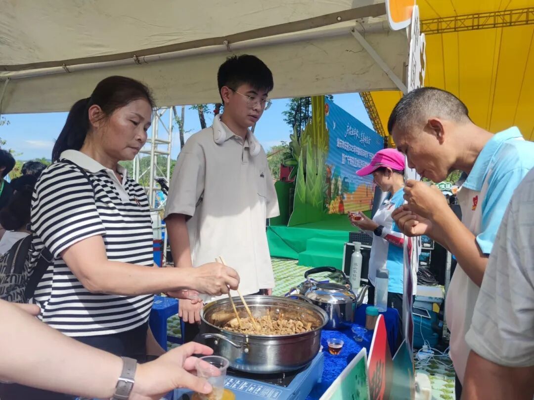洲仔镇的“顶流”麻竹笋更是人气爆棚,泡在红油、藤椒里的脆笋被装在小碟子里,路过的人都要拿一块尝尝,“够味!比平时买的零食还好吃”;潭布镇的 “山水腐竹” 直接现场 “开捞”,泡软的腐竹拌上酱油、醋、香菜,鲜香扑鼻,试吃的群众排起了小长队。