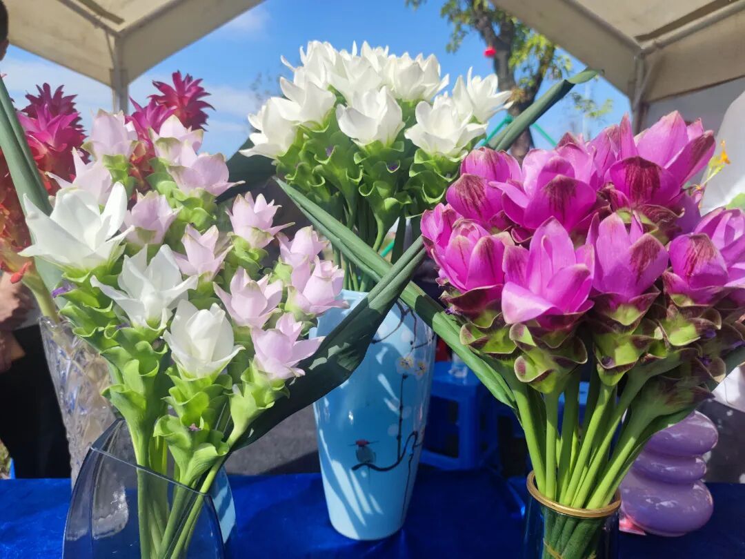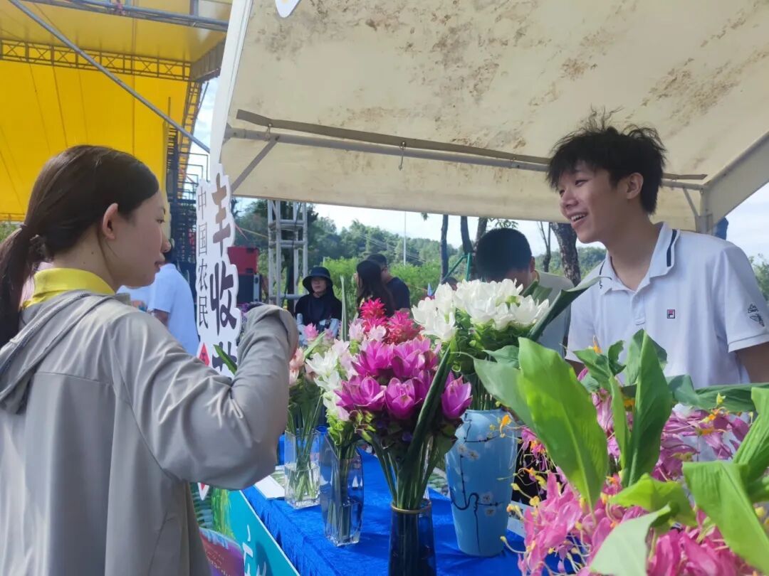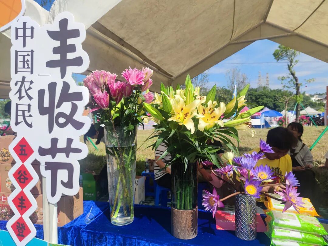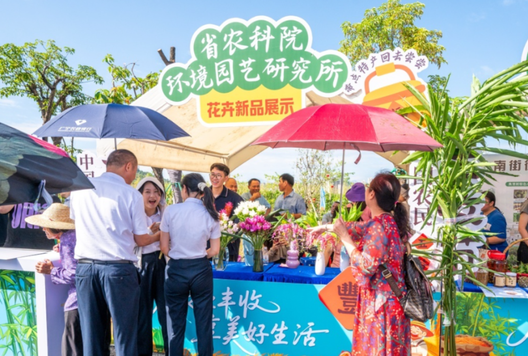 15个镇(街)的农产品集中展示区,俨然一场乡土味十足的丰收盛宴。花香、果香、茶香、酒香、肉香交织在一起,勾得人食欲大开。宾亨镇的香水百合与睡莲、天河区农科院带来的舞姜花,不仅花色鲜艳,香气更是沁人心脾,成为现场一道靓丽风景线。