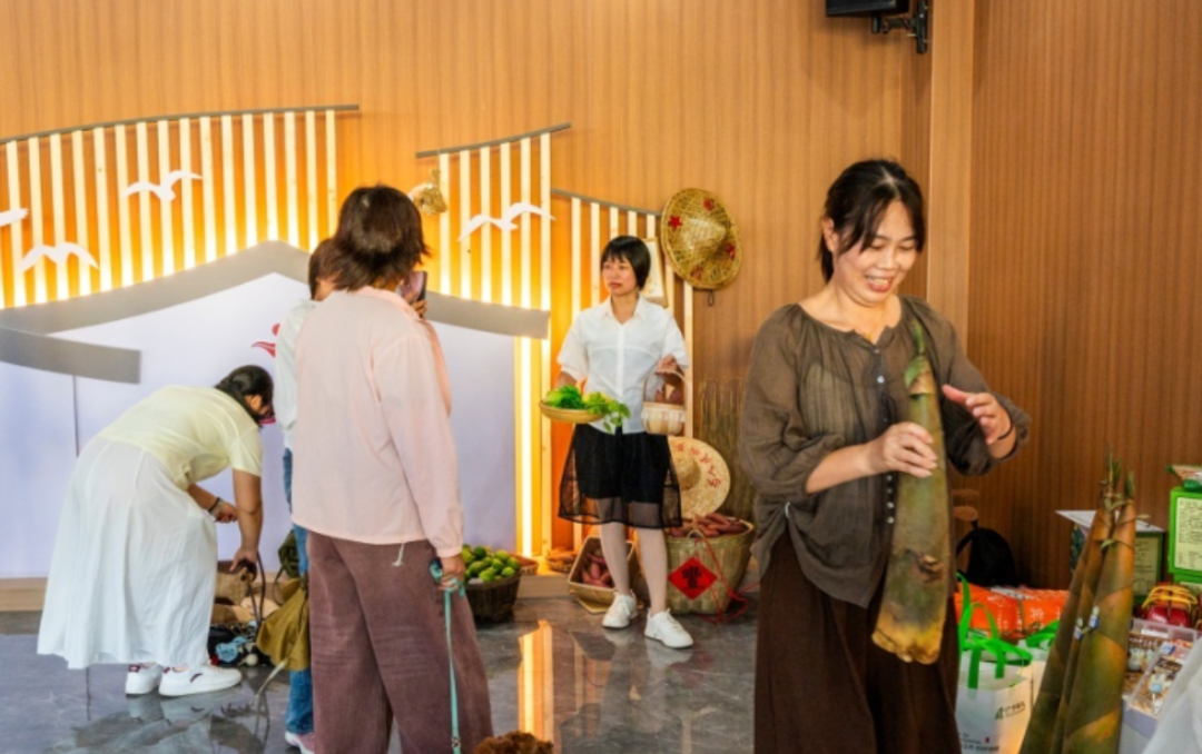 带着泥土芬芳的广宁番薯,表皮橙红饱满;包装精致的冷鲜光鸽、冷冻白条鸽与刚出炉的红烧乳鸽摆在一起,油亮的色泽让人垂涎欲滴;清水浸泡的鲜竹笋,脆嫩质感仿佛能闻到竹林清香。这些曾经“藏在深闺”的农产品,如今以规范的品牌形象成为丰收画卷的生动注脚。