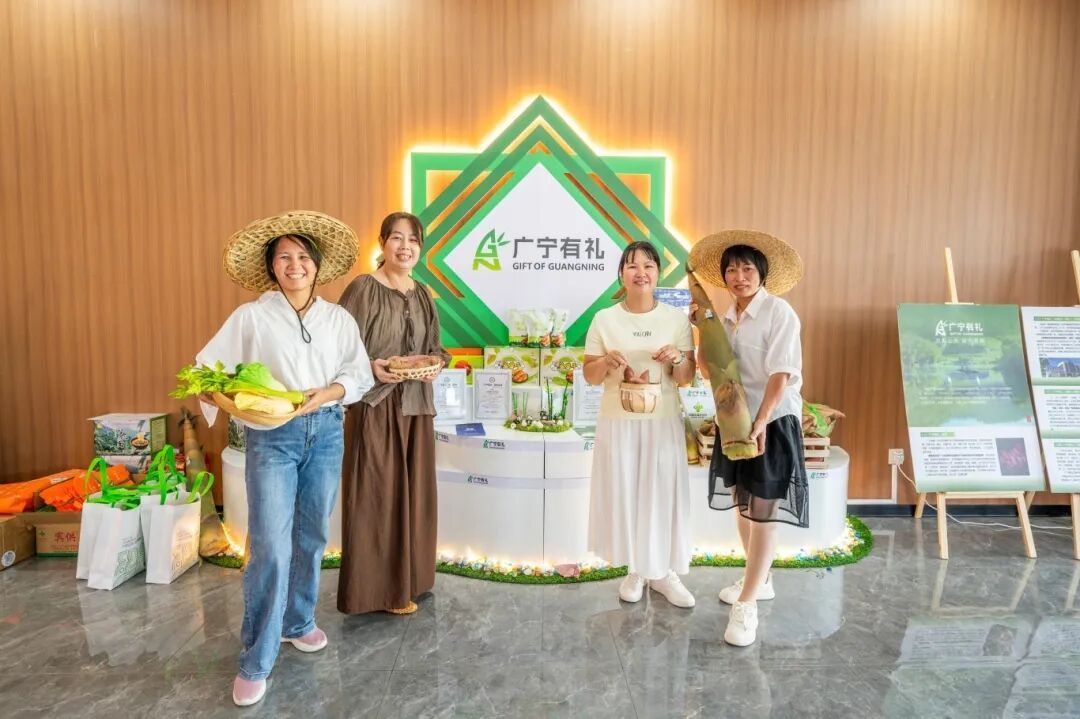 步入现代化设计的活动主展馆,高端大气的氛围中透着浓浓的乡土气息。“广宁有礼” 首批子产品整齐陈列,诉说着从田间到餐桌的蜕变故事。